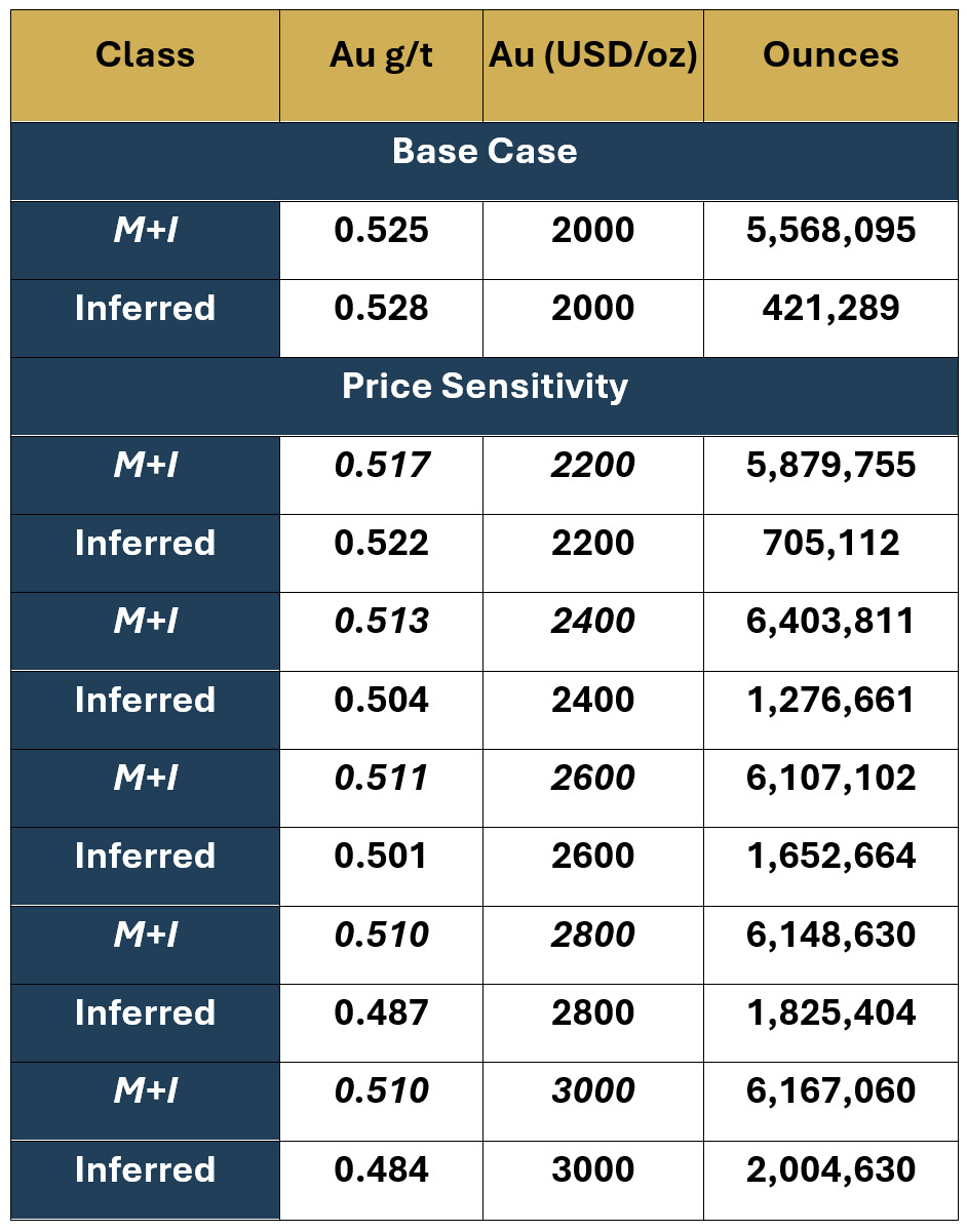 - M&I Resources of 5.57 moz at 0.53 g/t Au and